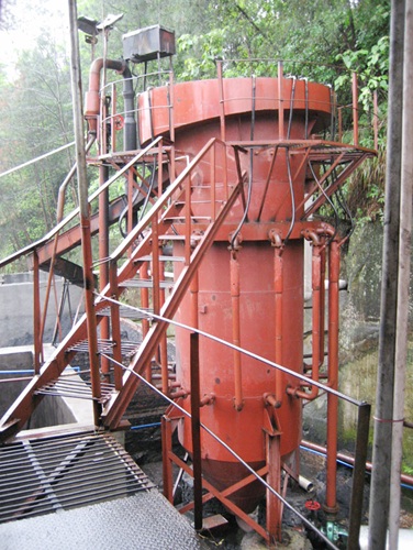 (1)改進型旋流浮選柱:設(shè)置入料礦化器,實現(xiàn)了礦漿自吸加藥,充氣,并使氣、液流充分攪拌混合,能實現(xiàn)礦漿充分礦化。