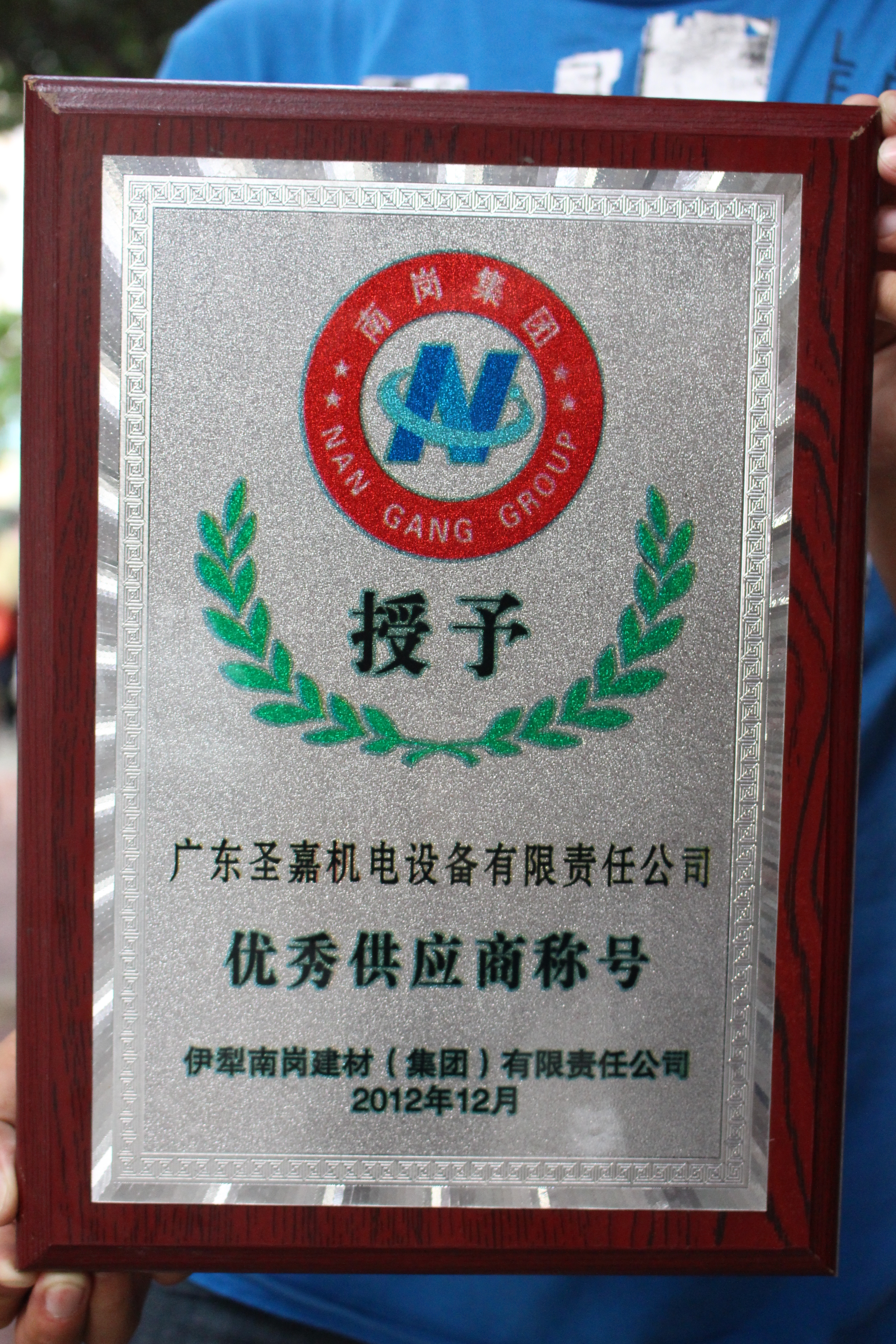 近日,從伊犁南崗建材集團(tuán)傳來喜訊,在集團(tuán)公司年終召開的合作單位答謝會上,特別給廣州圣嘉機(jī)電設(shè)備有限公司公司頒發(fā)了“優(yōu)秀供應(yīng)商”獎牌和獎金5000元。這是繼2011年廣州圣嘉第一次獲得伊犁南崗建材集團(tuán)優(yōu)秀供應(yīng)商榮譽(yù)稱號后,今年再度獲得此項(xiàng)殊榮。